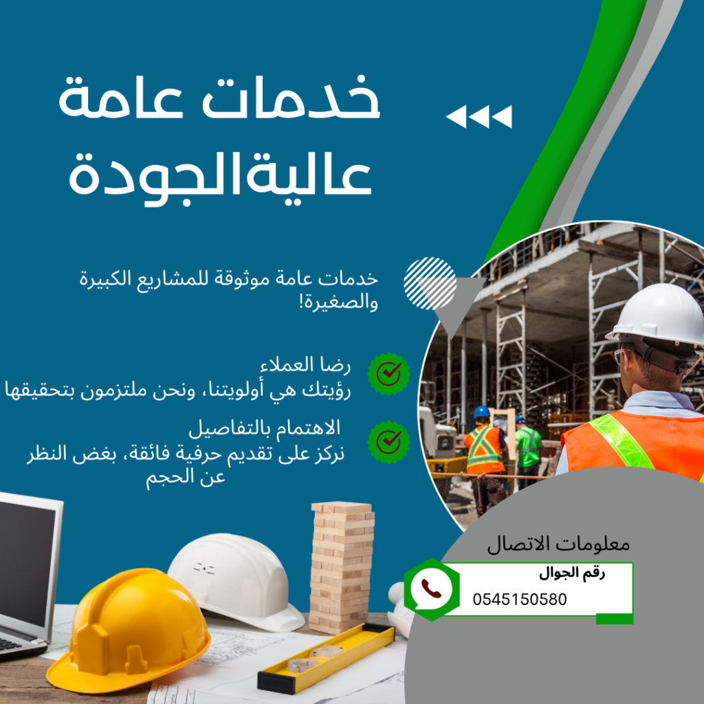 تقديم خدمات متكاملة في مجالات الأعمال والتنفيذ والصيانة وخدمات التكييف، بجودة عالية والتزام كامل، من خلال فريق محترف يعمل وفق معايير دقيقة تضمن رضا العملاء وبناء شراكات قائمة على الثقة داخل المملكة العربية السعودية.